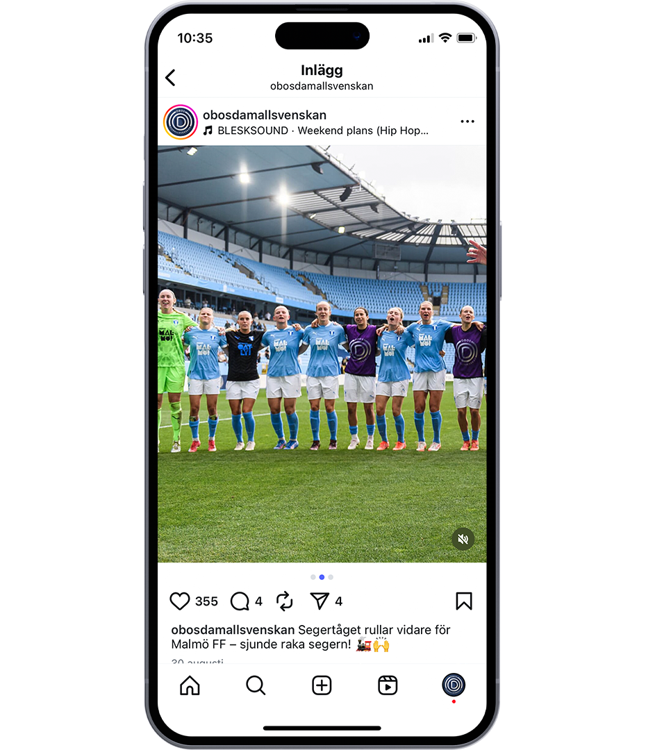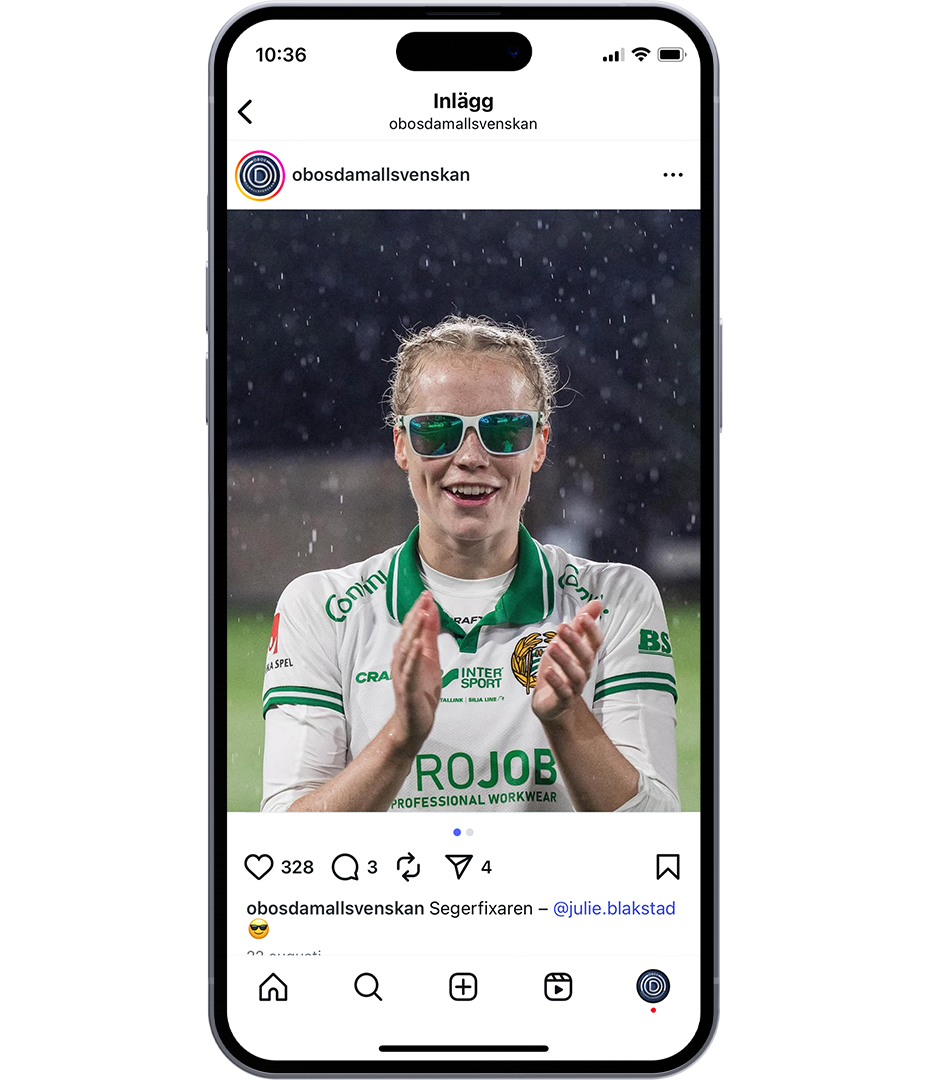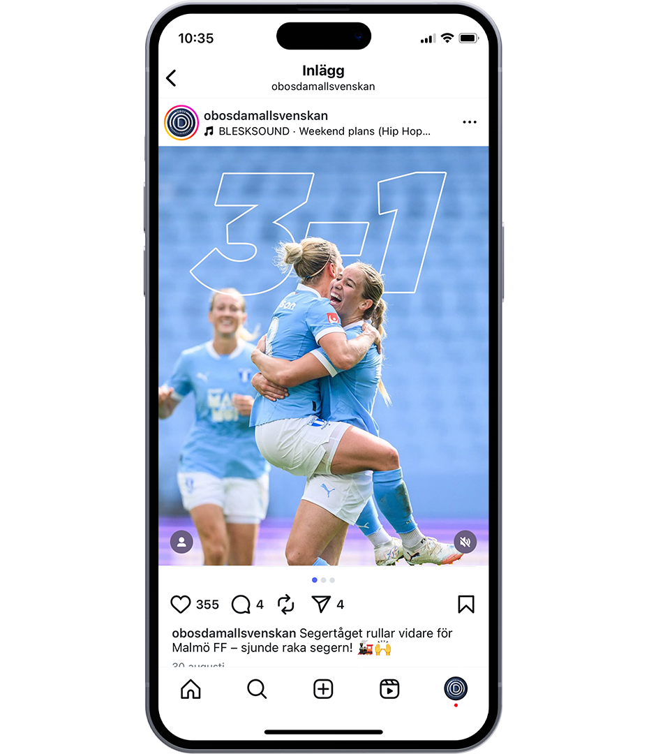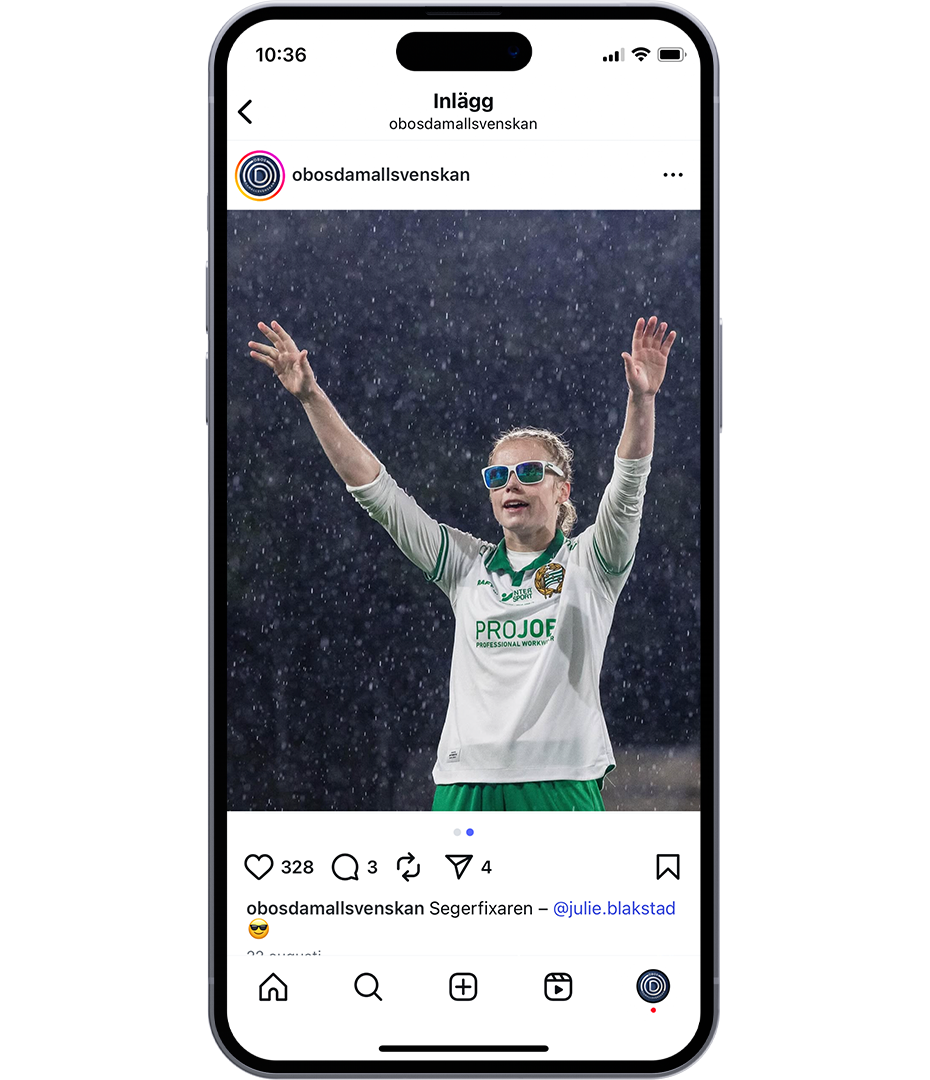 En matchdag handlade om att både informera och engagera publiken. Inför matcherna skapade jag innehåll som byggde spänning – med statistik, intressanta vinklar och praktisk information om biljetter och livesändningar. Under och efter matcherna låg fokus på att förstärka upplevelsen, lyfta höjdpunkter och resultat, och skapa innehåll som höll följarna engagerade och delaktiga.
