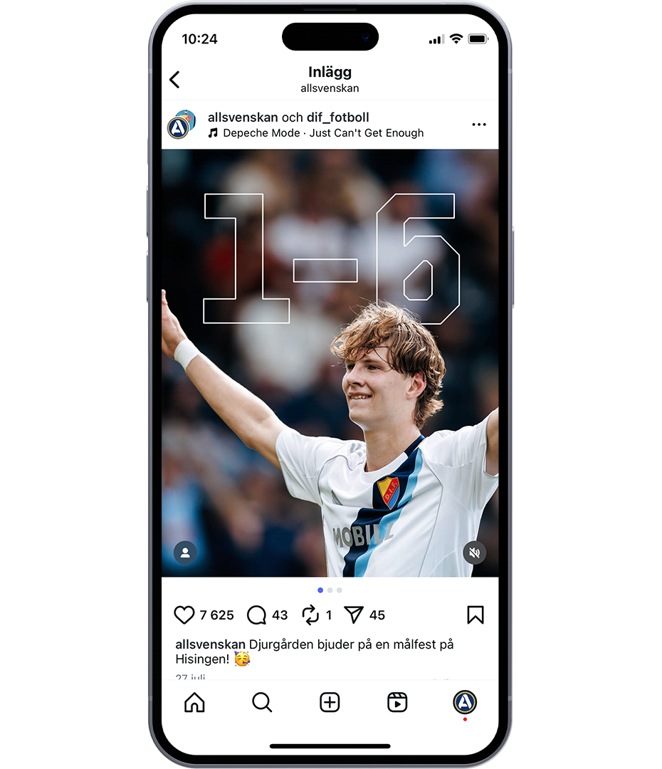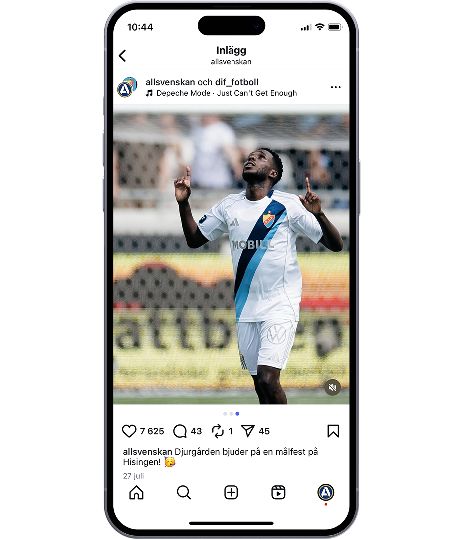 Under våren och sommaren fick jag chansen att arbeta för sveriges största fotbollsligor – med ansvar för sociala medier för Allsvenskan, Superettan, Damallsvenskan och Elitettan. Rollen handlade om att engagera och informera följarna, samt locka nya fans genom att rapportera kring matcherna, lyfta minnesvärda ögonblick och skapa innehåll som väcker känslor och stärker ligornas varumärken i digitala kanaler.