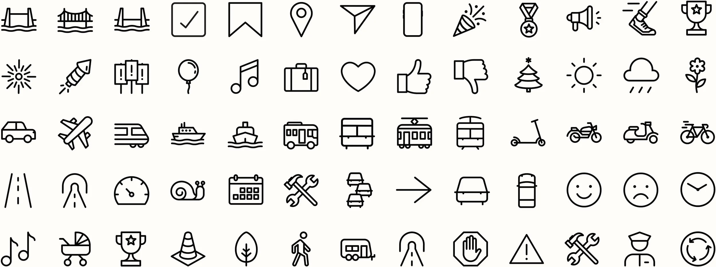 Jag designade över 100 ikoner för att förtydliga och förstärka budskapen, och animerade dessutom ett urval för användning i rörligt material.